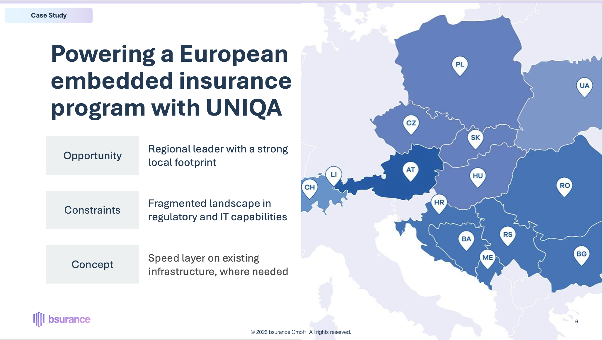 The most concrete reference point we shared in Copenhagen is our work with UNIQA.UNIQA is a regional leader across Central and Eastern Europe with strong local presence in markets ranging from Austria and Czechia to Croatia, Romania, Bulgaria, and beyond.