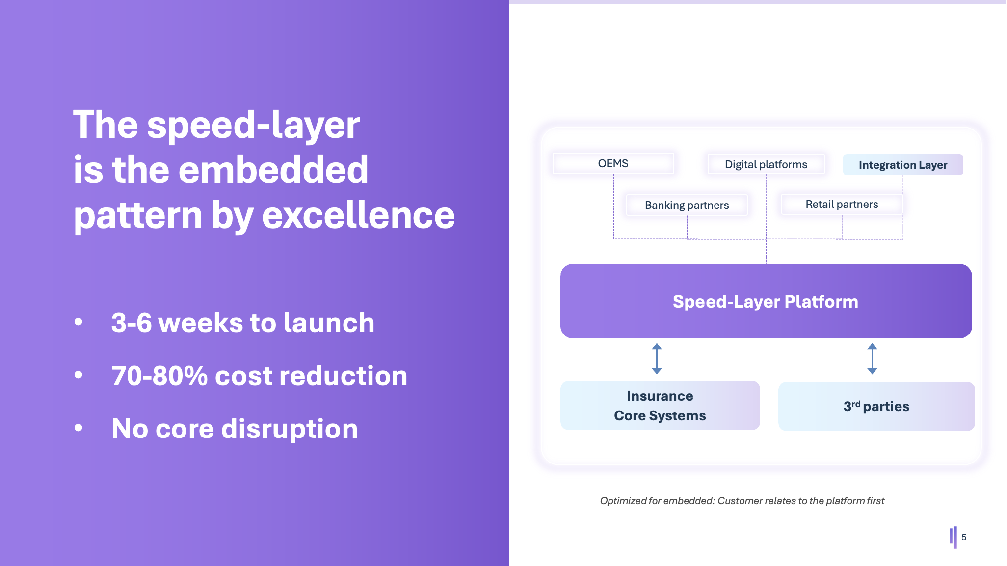 The opportunity for embedded insurance in their footprint is significant. The constraint is also significant: a fragmented landscape of regulatory frameworks, IT capabilities, and local operational realities across more than a dozen countries.The approach has been to deploy the speed layer where needed, on top of existing infrastructure, country by country - not to harmonise everything first and then launch, but to launch where the opportunity is sharpest and let the platform absorb the variation.A few learnings from this work that we shared on stage:
